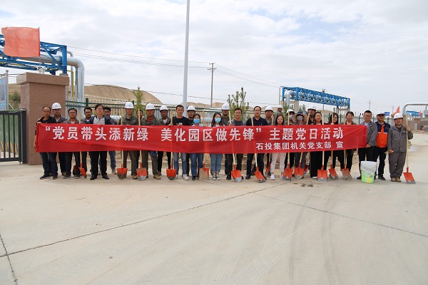 6月11日,,,,,,,,石投集团机关党支部在热源厂组织开展了“党员带头添新绿,,,,,,,,美化园区做先锋”主题党日植树活动,,,,,,,,集团机关党支部全体党员、入党积极分子及热源厂职工共同参与了此次植树活动,,,,,,,,以实际行动营造绿色环境,,,,,,,,建设美好园区。。。。。。。
