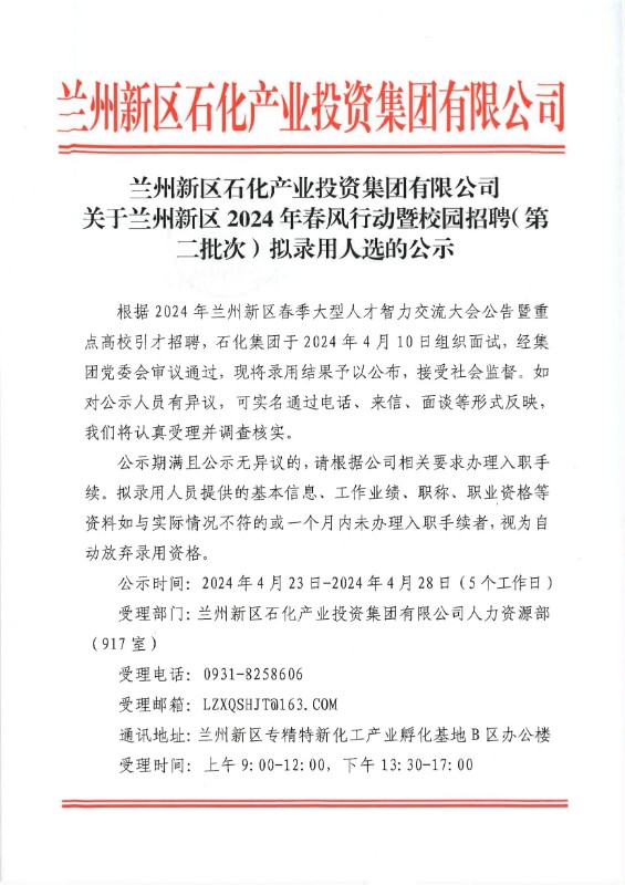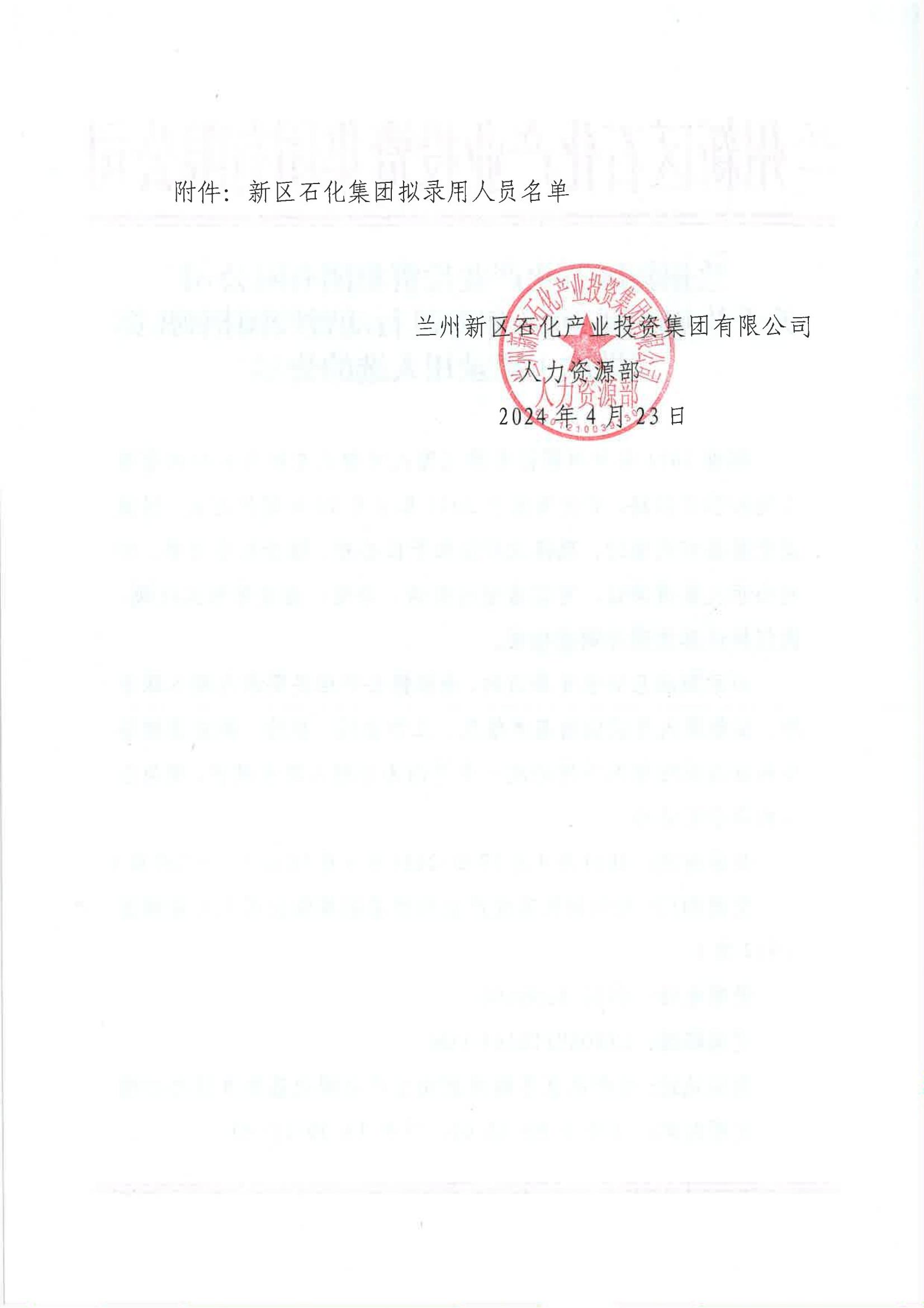 DB真人官网 关于兰州新区2024年春风行动暨校园招聘(第二批次)拟录用人选的公示