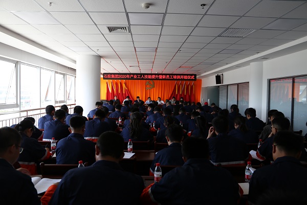 2020年8月10日上午,,,,,兰州新区石投集团举行2020年产业工人技能提升暨新员工培训开班仪式,,,,,新区党群工作部部长柴守强,,,,,集团公司副总经理姜锦,,,,,副总经理齐铁盾,,,,,副总经理高厚奇,,,,,秦川园区管委会委员、主任助理豆永良,,,,,新区党群工作部工会工作科科长狄生俊,,,,,工会工作科副科长郭凌冰出席开班仪式。。。。。