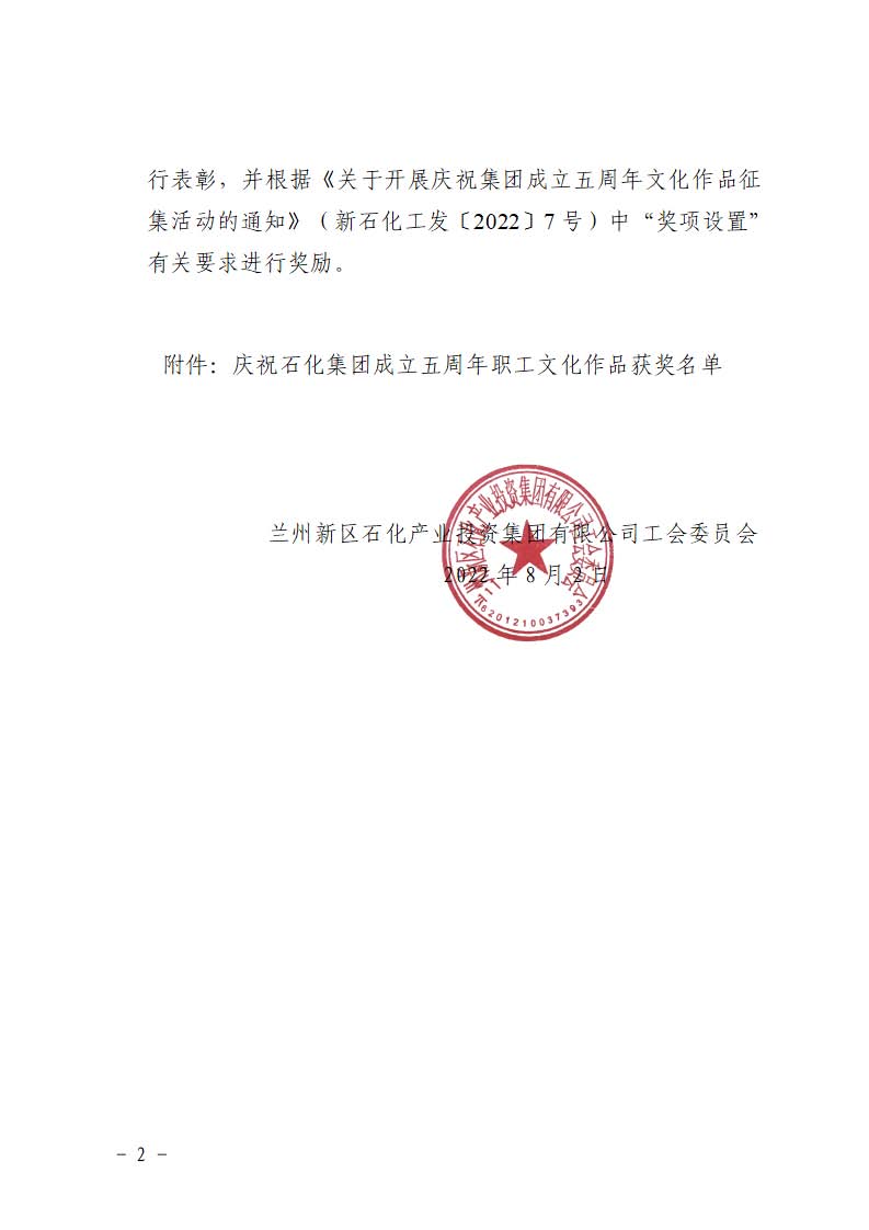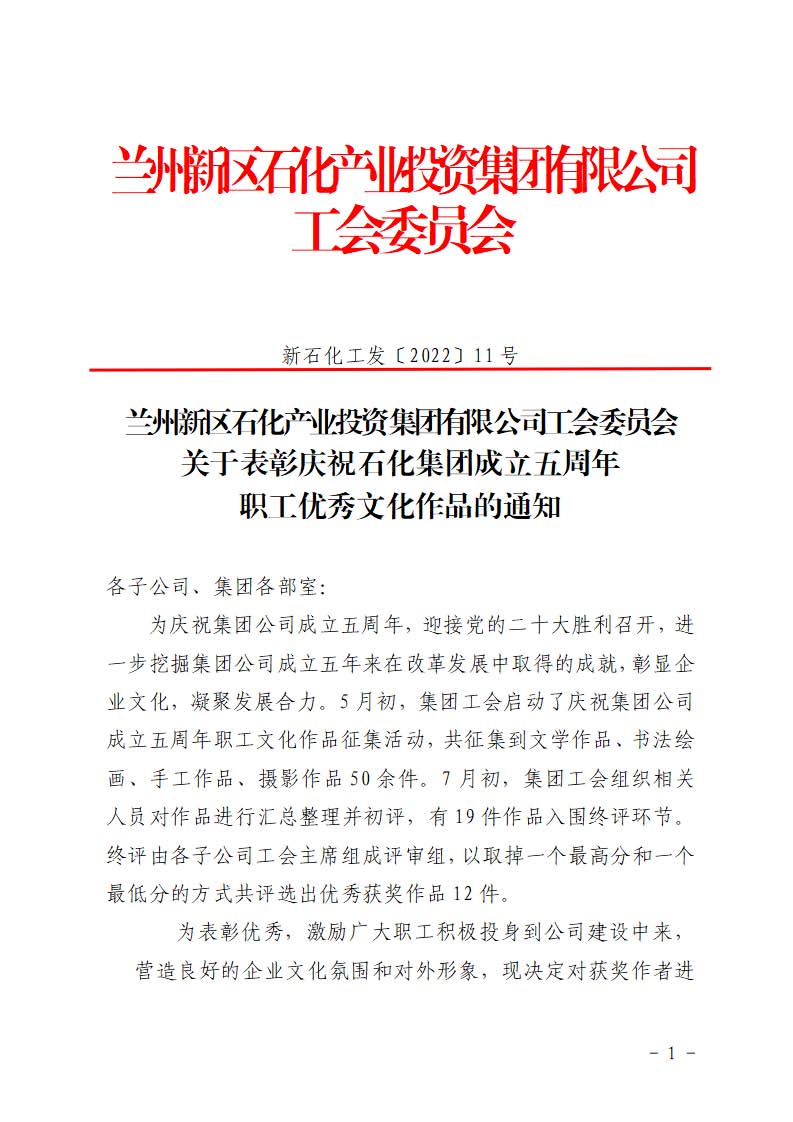 DB真人官网工会委员会 关于表彰庆祝DB真人官网集团成立五周年 职工优秀文化作品的通知